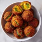 Using your hands or a small cookie scoop, shape the mixture into tight, one-inch balls. This size is perfect for snacking, giving you that satisfying pop of flavor with each bite. Place them carefully on a parchment-lined baking sheet to keep everything neat and make frying a breeze.