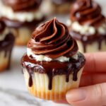 Delight in these Brownie Cupcake Cheesecakes, combining a fudgy brownie base with a creamy cheesecake layer in perfect individual servings. Easy to make and perfect for parties or a special treat, these mini desserts blend rich chocolate flavor with smooth cream cheese, topped optionally with chocolate chips, crushed Oreos, or fruity preserves.