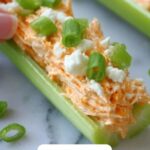 - Garnish and Serve: Sprinkle the blue cheese crumbles and diced green onions over the loaded celery sticks. Serve immediately as an appetizer or snack.