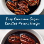 Deliciously sweet and crunchy candied pecans coated with a cinnamon sugar mixture, perfect for snacking, gifting, or adding a flavorful crunch to salads and desserts. These easy-to-make pecans are baked to perfection with a light vanilla-infused egg white coating that gives them a perfect crispness and rich flavor.