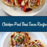For a fun party presentation, serve the Chicken Pad Thai Tacos Recipe on a large platter with all the toppings arranged in bowls for a build-your-own taco station. Or stack several tacos on a tiered stand for a vibrant and visually stunning spread that invites guests to dive in and enjoy.