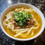 A comforting and flavorful Chicken Udon Soup featuring tender shredded chicken, chewy udon noodles, and a savory broth infused with soy sauce, mirin, and a touch of sweetness. This quick and easy recipe is perfect for a warming meal any day of the week.