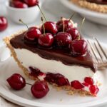 Chocolate Cherry Pie Bliss is a decadent no-bake dessert featuring a rich chocolate cookie crust filled with creamy chocolate cherry filling and topped with luscious cherry pie filling and chocolate curls. Perfectly chilled, this pie offers a harmonious blend of sweet cherries and silky chocolate.