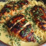 For a stunning presentation, serve the chicken over a bed of creamy mashed potatoes or a vibrant medley of sautéed spinach and sun-dried tomatoes stirred right into the sauce. If you’re entertaining, place each chicken breast on individual plates with a drizzle of extra sauce, a sprinkle of herbs, and a lemon wedge on the side for guests to squeeze fresh juice.