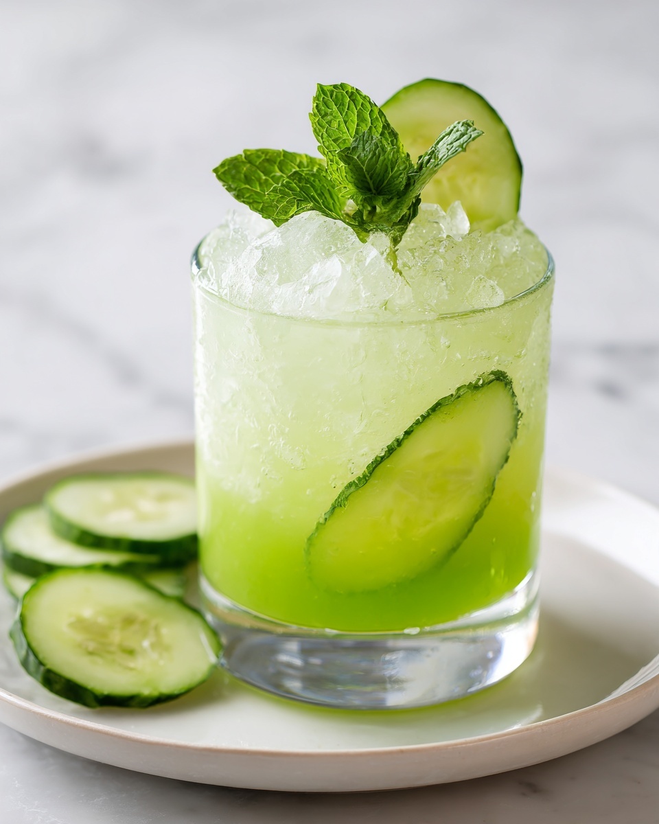 Enhance the visual appeal and flavor with fresh garnishes like mint leaves and lime wedges. The mint lends a delightful herbal aroma that complements the cucumber’s fresh taste, while the lime wedge adds a zesty finish each time you sip.