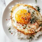 - Add the eggs: Gently place one fried egg on top of each serving of rice, ensuring the yolk remains visible for presentation and texture contrast.