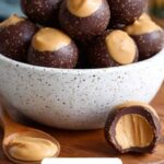 There’s no need to reheat buckeyes, but if you’d like a slightly softer bite, let them sit at room temperature for about 10 minutes before serving. Avoid microwaving as it may melt the chocolate shell unevenly.