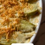 Bake the gratin in the preheated oven for 20 to 25 minutes until the topping is bubbling and beautifully golden. The creamy fennel should be tender and infused with the savory flavors of the cheese and garlic while the breadcrumbs add a lovely crisp texture contrast.
