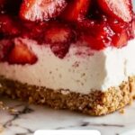 Once your cheesecake is firm, spread the luscious strawberry topping evenly over the surface. The contrast between the cool, silky filling and the bright berry glaze creates an irresistible combination. Return the cheesecake to the freezer if needed for a little extra firming or serve immediately chilled for the best experience.