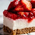 Once your cheesecake is firm, spread the luscious strawberry topping evenly over the surface. The contrast between the cool, silky filling and the bright berry glaze creates an irresistible combination. Return the cheesecake to the freezer if needed for a little extra firming or serve immediately chilled for the best experience.