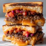 Grilled Cheese Burgers combine the best of two classic favorites: hearty, juicy cheeseburgers and crispy, melty grilled cheese sandwiches. These easy-to-make sandwiches feature perfectly seasoned and grilled beef patties layered with cheddar cheese between slices of buttered Texas toast, grilled until golden brown and ooey-gooey. Customize with your favorite toppings for a satisfying main course that’s perfect for casual meals or gatherings.