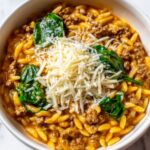 A comforting and creamy one-pot meal featuring lean ground beef and tender orzo pasta cooked in a rich tomato cream sauce, enhanced with aromatic spices, fresh spinach, and parmesan cheese. Ready in just 30 minutes, this hearty dish is perfect for a quick and satisfying dinner.