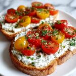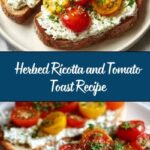 A simple and fresh recipe for Herbed Ricotta and Tomato Toast, perfect for a quick breakfast or light snack. Crispy toasted bread is topped with creamy ricotta blended with fresh herbs and vibrant cherry tomatoes, finished with a drizzle of olive oil and flaky sea salt for a flavorful bite.