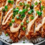 A classic Japanese Katsu Bowl featuring crispy breaded chicken breasts fried to golden perfection, served over fluffy white rice and topped with savory tonkatsu sauce. This quick and easy meal is perfect for a flavorful dinner using simple ingredients.