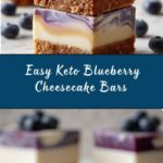 These Keto Blueberry Cheesecake Bars are a delicious low-carb dessert featuring a buttery almond flour crust, creamy cheesecake filling, and a vibrant blueberry swirl. Perfect for those following a keto or gluten-free diet, these bars are sweetened with erythritol and offer a rich, satisfying treat without the carbs and sugar.