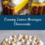 This Lemon Meringue Cheesecake is a luscious dessert combining a creamy lemon-flavored cheesecake with a tangy lemon curd topping and a light, toasted meringue finish. Perfect for special occasions or holiday gatherings, this recipe features a graham cracker crust, smooth cheesecake filling infused with fresh lemon zest and juice, a rich lemon curd, and a beautifully toasted meringue layer.