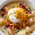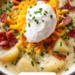 This Loaded Baked Potato Soup is a creamy, comforting dish full of classic baked potato flavors like crispy bacon, sharp cheddar cheese, and fresh chives. It’s easy to prepare on the stovetop and perfect for chilly days when you want a hearty and satisfying meal.