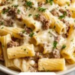This Loaded Cheeseburger Alfredo Pasta combines the savory flavors of a classic cheeseburger with creamy Alfredo sauce, tossed with penne pasta for a rich and satisfying dish. Ground beef is browned and mixed with sautéed onions and garlic, then combined with a luscious cheese sauce featuring cheddar, mozzarella, and cream cheese, finished with crispy bacon and optional pickles for that authentic burger twist. Ready in just 30 minutes, this comfort food twist is perfect for a hearty family meal.