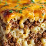 This Mac ānā Cheese-Stuffed Meatloaf recipe combines the classic comfort foods of meatloaf and creamy mac and cheese into one delicious, hearty dish. Ground beef meatloaf is filled with rich macaroni and cheddar cheese, then baked to perfection with a tangy BBQ sauce glaze, making it a crowd-pleaser ideal for family dinners or special occasions.