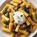 This One-Pot Lemony Pasta with Sausage, Broccoli Rabe, and Burrata is a vibrant Italian-American main course combining tender pasta, savory Italian sausage, and slightly bitter broccoli rabe, all brightened with fresh lemon and finished with creamy burrata cheese. It’s a comforting yet fresh meal that comes together quickly using a single pot, making cleanup easy and the flavors meld beautifully.