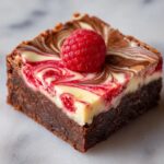 - Assemble the brownies: Pour the brownie batter into the prepared pan, spreading it out evenly. Drop spoonfuls of the cooled raspberry sauce over the batter. Using a knife or skewer, swirl the raspberry sauce through the batter to create a marbled effect.