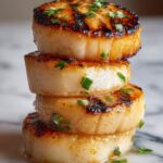 Patting the scallops dry cannot be overstated. Moisture is the enemy of a good sear, so use a paper towel and gently press until they are as dry as possible. Season both sides generously with salt and pepper — this simple step brings out their natural flavor and helps form that sought-after golden crust.