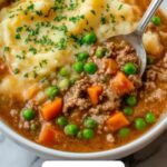 Shepherd’s Pie Soup is a comforting and hearty dish that captures all the flavors of traditional shepherd’s pie in a warm, easy-to-make soup form. Packed with ground beef, vegetables, and herbs, and topped with creamy mashed potatoes and fresh parsley, this soup is perfect for cozy dinners.