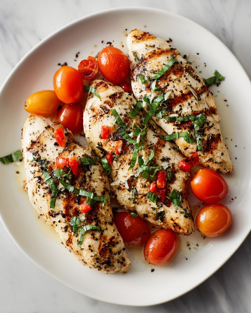 For a dinner that wows, present the chicken on a rustic wooden board scattered with extra cherry tomatoes and basil sprigs. You could also stuff the chicken into a sandwich with fresh mozzarella and roasted peppers or turn this recipe into a vibrant pasta topping for a colorful twirl on an Italian classic.