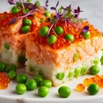 Once your crispy rice is ready and your salmon mixture is perfectly blended, it’s assembly time. Place one crispy rice rectangle on each serving plate, then generously spoon the spicy salmon on top. The contrast of textures and flavors starts to come to life here—the crunchy rice and spicy creamy salmon create a harmonious bite every time.
