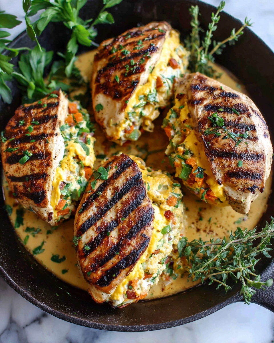 For a dinner party or special meal, try serving the stuffed chicken breasts sliced and fanned out on a large platter layered with a bed of wilted spinach. Drizzle some herb-infused olive oil or a garlic butter sauce over the top to enhance each bite. You can also stuff mini chicken breast medallions with the same filling and skewer them for a fun, bite-sized appetizer version.