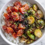 If you are searching for a vibrant, healthy dinner option that brings both comfort and a burst of flavor, the Teriyaki Salmon Bowls with Brussels Sprouts Recipe is an absolute winner. This dish masterfully combines tender, flaky salmon glazed in a rich, homemade teriyaki sauce with perfectly roasted Brussels sprouts that add a deliciously crispy texture. Paired with fluffy jasmine rice and garnished with sesame seeds and green onions, every bite delivers a satisfying harmony of sweet, savory, and fresh notes that make this bowl irresistible and nourishing at the same time.