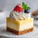 Right before serving, whip the heavy cream and powdered sugar together until stiff peaks form—this fluffy topping adds a light, airy contrast to the rich custard below. Spread the whipped cream evenly over the set custard layer. Finally, cut into neat squares and serve chilled for the ultimate treat.