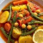 A hearty and flavorful Vegan Stew packed with a variety of fresh vegetables, chickpeas, and aromatic herbs, perfect for a comforting and nutritious meal.