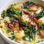 If you have been searching for a comforting, rich, and hearty soup that feels like a warm hug on a chilly day, the Zuppa Toscana Recipe is exactly what you need. Combining savory Italian sausage, crispy bacon, tender potatoes, and vibrant kale all swimming in a creamy broth, this soup is a perfect balance of textures and flavors that will quickly become a family favorite. It’s not just a dish; it’s an experience — simple ingredients coming together to create something truly special and deeply satisfying.